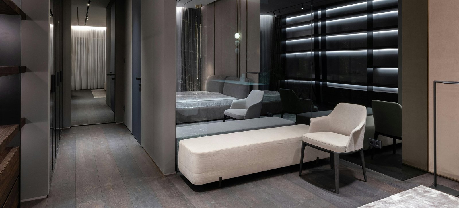 From flooring and wall finishes to upholstery and wood tones, we choose each element quietly after long-term qualitative analysis, so the room settles in and grows more comfortable over the years overruling monotonous experiences.